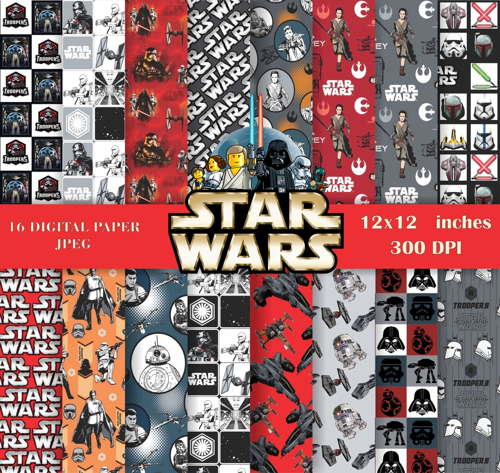 Digital Paper inspired by Star Wars. Digital Pattern. Clipart. Scrapbook paper. Instant Download, 12X12 inch. 300 DPI. 16 Digital paper.