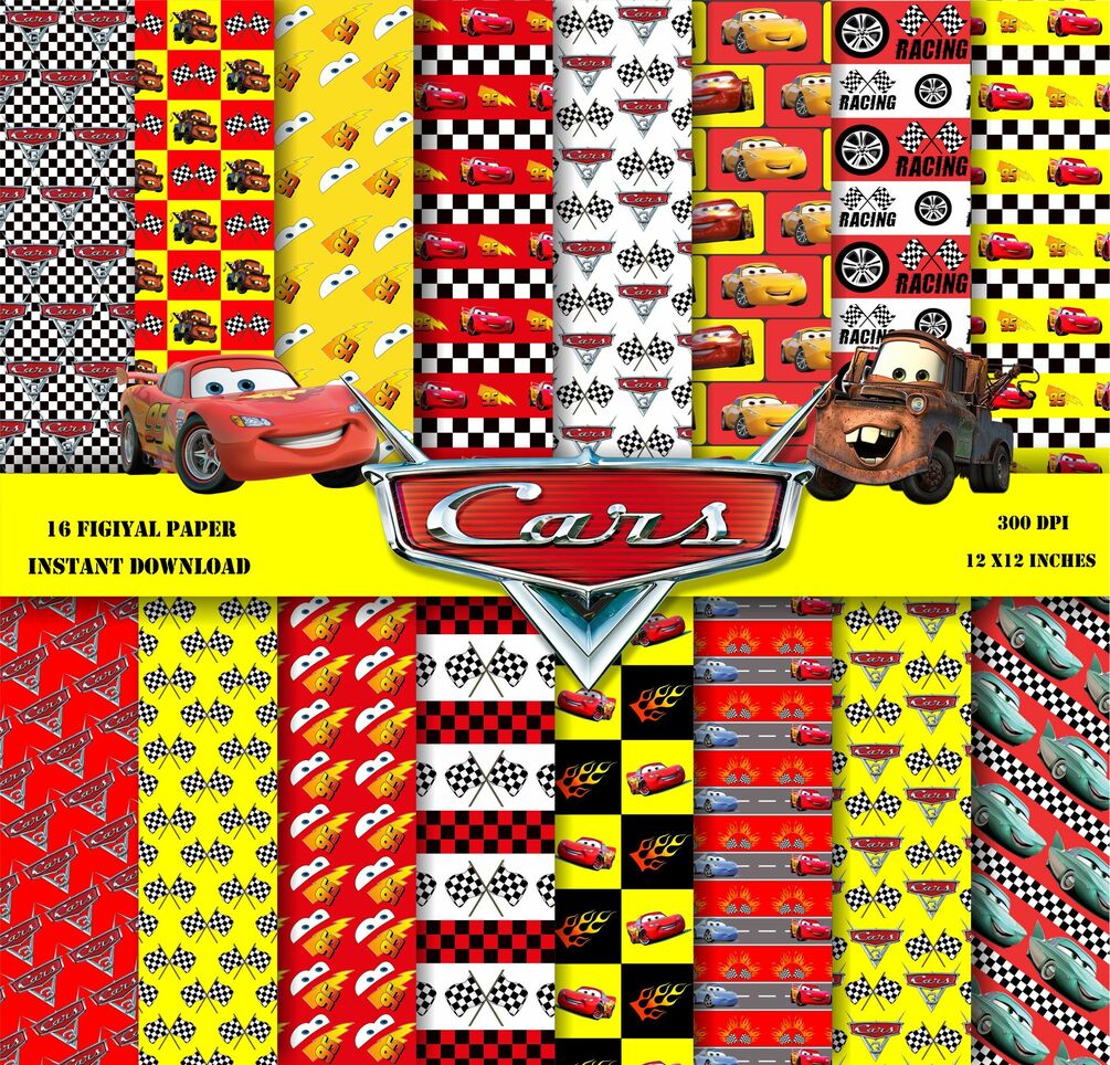 Digital Paper inspired by Disney Cars. Digital Pattern. Clipart. Scrapbook paper. Instant Download, 12X12 inch. 300 DPI. 16 Digital paper.